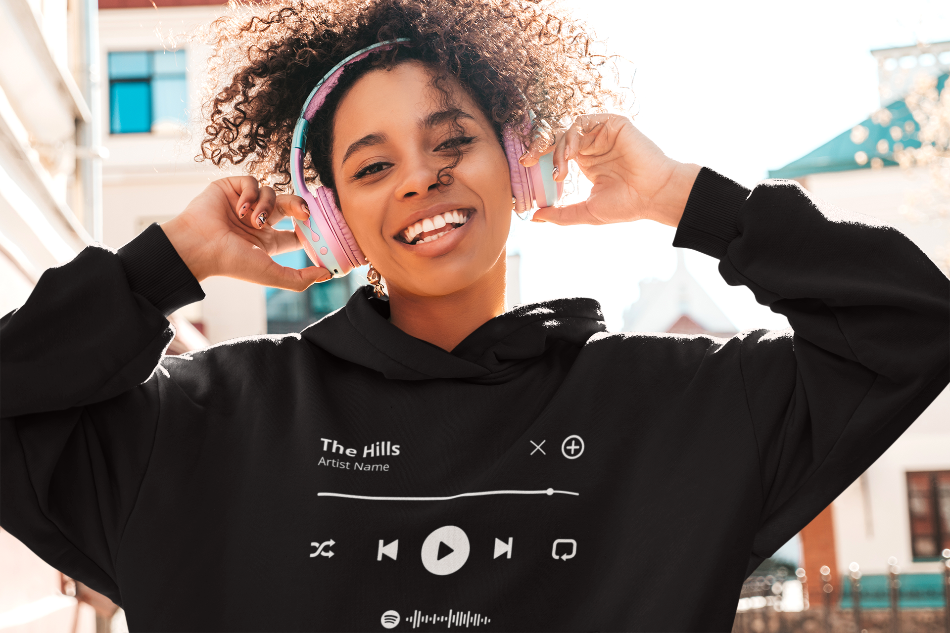 Customize your hoodie with any song title and artist.